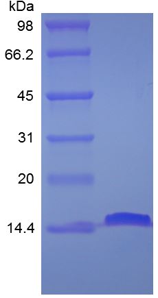 Approximately 15.1 kDa, a single non-glycosylated polypeptide chain containing 131 amino acids. |