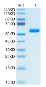 | Molecular Mass : | The protein has a predicted MW of 48.7 kDa. Due to glycosylation, the protein migrates to 55-65 kDa based on Tris-Bis PAGE result. |