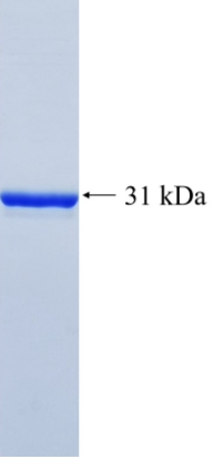 Form : | The purified protein was lyophilized from sterile phosphate-buffered saline (PBS: 58 mM Na₂HPO₄, 17 mM NaH₂PO₄, 68 mM NaCl, pH 8.0). Prior to lyophilization, 5% (w/v) trehalose and 5% (w/v) mannitol were incorporated as cryoprotective excipients. The protein was eluted with a buffer containing 100 mM reduced glutathione (GSH). |