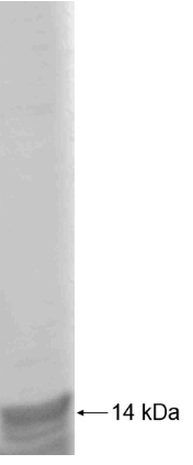 Form : | The purified protein was lyophilized from sterile phosphate-buffered saline (PBS: 58 mM Na₂HPO₄, 17 mM NaH₂PO₄, 68 mM NaCl, pH 7.4). Prior to lyophilization, 5% (w/v) trehalose and 5% (w/v) mannitol were incorporated as cryoprotective excipients. The protein was eluted with a buffer containing 300 mM imidazole. |