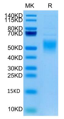 | Molecular Mass : | The protein has a predicted MW of 22.1 kDa. Due to glycosylation, the protein migrates to 48-65 kDa based on Tris-Bis PAGE result. |