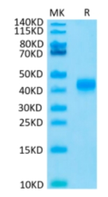 | Molecular Mass : | The protein has a predicted MW of 31.8 kDa. Due to glycosylation, the protein migrates to 38-45 kDa based on Tris-Bis PAGE result. |