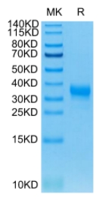 Molecular Mass : | The protein has a predicted MW of 23.2 kDa. Due to glycosylation, the protein migrates to 30-40 kDa based on Tris-Bis PAGE result. |