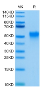 | Molecular Mass : | The protein has a predicted MW of 24.7 kDa. Due to glycosylation, the protein migrates to 50-55 kDa based on Tris-Bis PAGE result. |