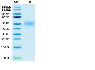 | Molecular Mass : | The protein has a predicted MW of 23.7kDa .As a result of glycosylation, the protein migrates to 47- 53kDa based on Bis-Tris PAGE. |