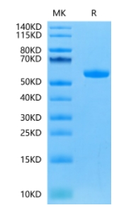 | Molecular Mass : | The protein has a predicted MW of 46.9 kDa. Due to glycosylation, the protein migrates to 52-60 kDa based on Tris-Bis PAGE result. |