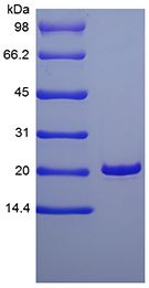 Human KGF-1 also known as Fibroblast growth factor 7 (FGF-7), is encoded by the FGF7 gene. KGF-1 only binds to the b splice form of the tyrosine kinase receptor, FGFR2b/KGFR. Affinity between KGF-1 and its receptor can be increased by heparin or heparan sulfate proteoglycan. FGF-10, also called keratinocyte growth factor 2 (KGF-2), shares 51 % amino acid sequence identity and similar function to KGF-1, but uses an additional receptor, FGFR2c. KGF-1 plays an important role in the regulation of embryonic development, cell proliferation and cell differentiation. KGF-1 actives on keratinocytes, and exhibits mitogenic activity for epidermal cells, but essentially no activity for fibroblasts. KGF-1 has species crossactive, human KGF-1 shares 96 % amino acid sequence identity with murine, and 92 % with rat. |