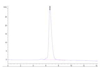 The protein has a predicted MW of 42. 5 kDa. Due to glycosylation, the protein migrates to 70-110KDa based on Bis-Tris PAGE result. |