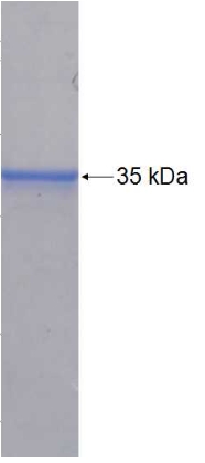 | Form : | The purified protein was lyophilized from sterile phosphate-buffered saline (PBS: 58 mM Na₂HPO₄, 17 mM NaH₂PO₄, 68 mM NaCl, pH 8.0). Prior to lyophilization, 5% (w/v) trehalose and 5% (w/v) mannitol were incorporated as cryoprotective excipients. The protein was eluted with a buffer containing 100 mM reduced glutathione (GSH). |