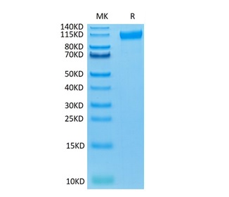 | Molecular Mass : | The protein has a predicted MW of 85.1 kDa.Due to glycosylation, the protein migrates to 100-120KDa based on Bis-Tris PAGE result. |