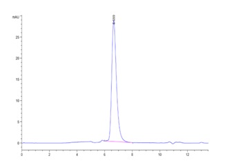 | Molecular Mass : | The protein has a predicted MW of 61. 2 kDa. Due to glycosylation, the protein migrates to 75-100KDa based on Bis-Tris PAGE result. |