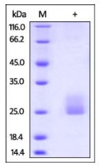| Molecular Mass : | The protein has a calculated MW of 18.9 kDa. The protein migrates as 25-30 kDa under reducing (R) condition (SDS-PAGE). |