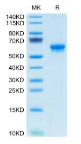 Molecular Mass : | The protein has a predicted MW of 44.8 kDa. Due to glycosylation, the protein migrates to 90-118 kDa based on Tris-Bis PAGE result. |