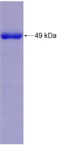 Form : | The purified protein was Lyophilized from sterile PBS (58mM Na2HPO4,17mM NaH2PO4, 68mM NaCl, pH7.). 5 % trehalose and 5 % mannitol are added as protectants before lyophilization. |