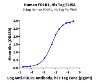 | Bio-activity : | Immobilized Human FOLR1, His Tag at 1 μg/ml (100 μl/Well) on plate.Dose response curve for Anti-FOLR1 Antibody, hFc Tag with the EC50 of 4.6 ng/ml determined by ELISA. |