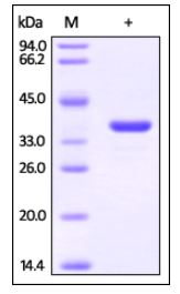 | Molecular Mass : | The protein has a calculated MW of 36.9 kDa. The protein migrates as 37 kDa under reducing (R) condition (SDS-PAGE). |