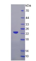 23kDa as determined by SDS-PAGE reducing conditions. |