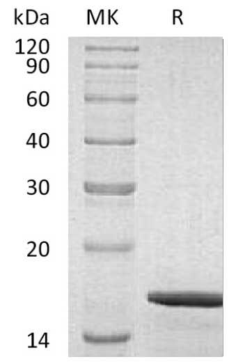 | Storage : | Lyophilized protein should be stored at ≤ -20°C, stable for one year after receipt. Reconstituted protein solution can be stored at 2-8°C for 2-7 days. Aliquots of reconstituted samples are stable at ≤ -20°C for 3 months. |