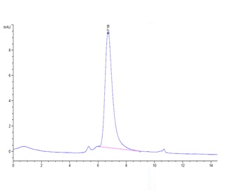 The protein has a predicted MW of 40. 7 kDa. Due to glycosylation, the protein migrates to 48-62KDa based on Bis-Tris PAGE result. |