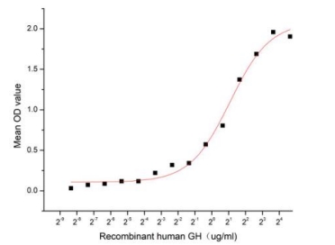 | Bio-activity : | Growth Hormone (GH), also known as somatotropin, is a member of a family of growth factors. Human growth hormone is a 191 amino acid single-chain polypeptide produced via the anterior pituitary of the brain in the acidophilic, somatotrophic cells. Its production is tightly regulated through several complex feedback mechanisms in response to stress, exercise, nutrition, sleep, and growth hormone itself. Annexin A2 (ANXA2) has been shown to play multiple roles in growth, development, metabolism and ANXA2 is a high affinity receptor for GH. Thus a functional binding ELISA assay was conducted to detect the interaction of recombinant human GH and recombinant human ANXA2. Briefly, GH was diluted serially in PBS with 0.01% BSA (pH 7.4). Duplicate samples of 100 μl were then transferred to ANXA2-coated microtiter wells and incubated for 1h at 37°C. Wells were washed with PBST and incubated for 1h with anti-GH pAb, then aspirated and washed 3 times. After incubation with HRP labelled secondary antibody for 1h at 37°C, wells were aspirated and washed 5 times. With the addition of substrate solution, wells were incubated 15-25 minutes at 37°C. Finally, add 50 µl stop solution to the wells and read at 450/630 nm immediately. The binding activity of recombinant human GH and recombinant human ANXA2 was shown, the EC50 for this effect is 2.1 ug/mL. |