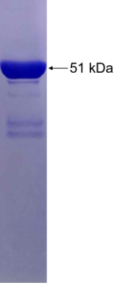 | Form : | The purified protein was lyophilized from sterile phosphate-buffered saline (PBS: 58 mM Na₂HPO₄, 17 mM NaH₂PO₄, 68 mM NaCl, pH 8.0). Prior to lyophilization, 5% (w/v) trehalose and 5% (w/v) mannitol were incorporated as cryoprotective excipients. The protein was eluted with a buffer containing 100 mM reduced glutathione (GSH). |