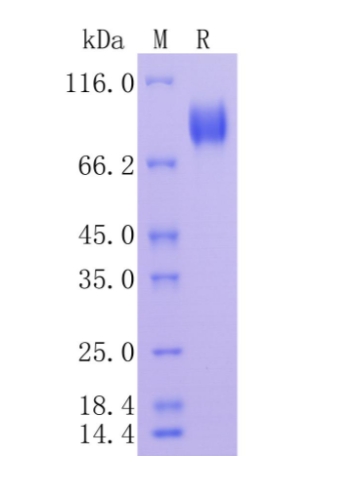 | Product Overview : | Recombinant human Osteoactivin/GPNMB protein (Q14956) (Ala 22-Pro 486) with a His tag at the C-terminus was expressed in HEK293. |