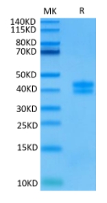 Molecular Mass : | The protein has a predicted MW of 26.5 kDa. Due to glycosylation, the protein migrates to 28-40 kDa based on Tris-Bis PAGE result. |