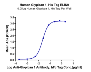 | Bio-activity : | Immobilized Human Glypican 1, His Tag at 0.5μg/ml (100μl/well) on the plate. Dose response curve for Anti-Glypican 1 Antibody, hFc Tag with the EC50 of 21.9ng/ml determined by ELISA. |