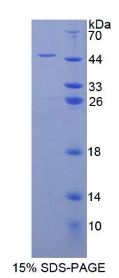 45kDa as determined by SDS-PAGE reducing conditions. |