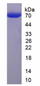 70kDa as determined by SDS-PAGE reducing conditions. |