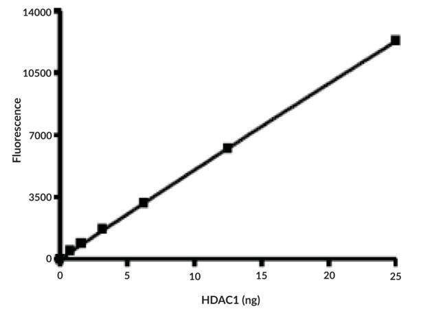 | Unit Definition : | One unit is the amount of enzyme required to release 1 pmol of acetate per minute at 37 centigrade in 25 mM Tris/HCl, pH 8.0, 137 mM NaCl, 2.7 mM KCl, 1 mM MgCl2, 0.1 mg/ml BSA, and 20 μM fluorogenic HDAC substrate 3 and HDAC1. |
