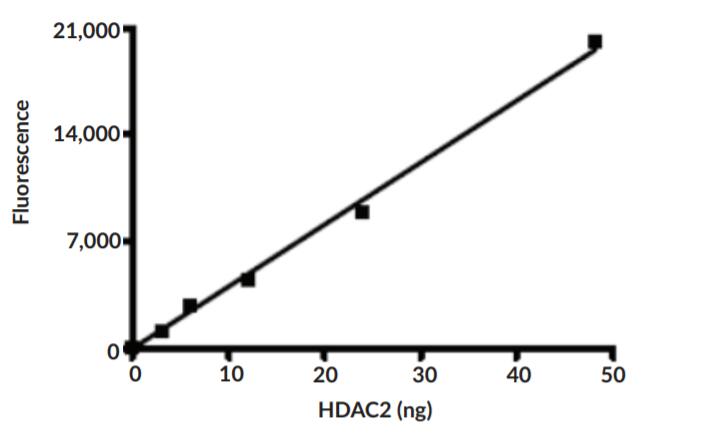 One unit is the amount of enzyme required to release 1 pmol of acetate per minute at 37 centigrade in 25 mM Tris-HCl, pH 8.0, with 137 mM sodium chloride, 2.7 mM potassium chloride, 1 mM magnesium chloride, 0.1 mg/mL BSA, and 20 μM fluorogenic HDAC substrate 3. |