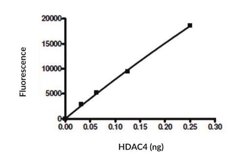 | Unit Definition : | One unit is the amount of enzyme required to release 1 pmol of acetate per minute at 37 centigrade in 25 mM Tris/HCl, pH 8.0, 137 mM NaCl, 2.7 mM KCl, 1 mM MgCl2, 0.1 mg/ml BSA, and 20 µM fluorogenic HDAC class 2a substrate. |