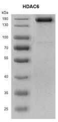 Product Overview : | Recombinant human HDAC6 was expressed in a baculovirus expression system as the full length protein (accession number NP_001308154.1) with a C-terminal FLAG-Tag. The molecular weight of the protein is 135.7 kDa. The recombinant protein is >85% pure by SDS-PAGE. |