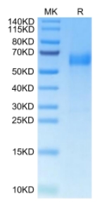 Molecular Mass : | The protein has a predicted MW of 38.1 kDa. Due to glycosylation, the protein migrates to 50-70 kDa based on Tris-Bis PAGE result. |