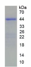 44kDa as determined by SDS-PAGE reducing conditions. |