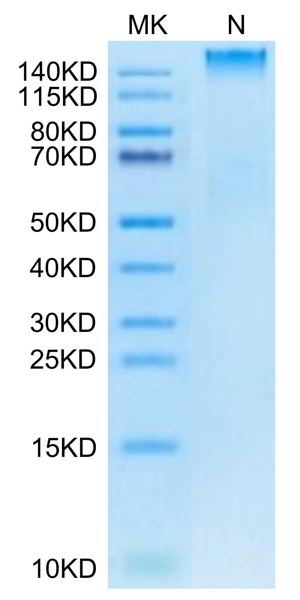 | Molecular Mass : | The protein has a predicted MW of 258 kDa. Due to glycosylation, the protein migrates to 260-265 kDa under Non reducing (N) condition based on Tris-Bis PAGE result. |