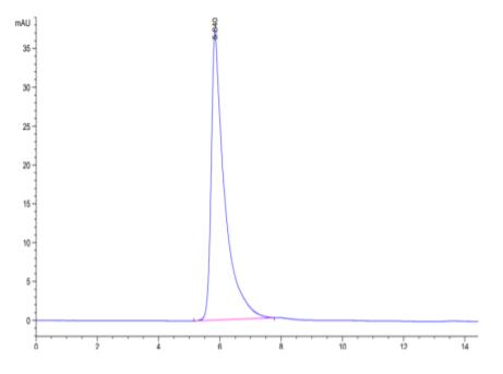 | Molecular Mass : | The protein has a predicted MW of 258 kDa. Due to glycosylation, the protein migrates to 260-265 kDa under Non reducing (N) condition based on Bis-Tris PAGE result. |