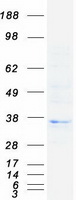 HLA-DOB belongs to the HLA class II beta chain paralogues. This class II molecule is a heterodimer consisting of an alpha (DOA) and a beta chain (DOB), both anchored in the membrane. It is located in intracellular vesicles. DO suppresses peptide loading of MHC class II molecules by inhibiting HLA-DM. Class II molecules are expressed in antigen presenting cells (APC: B lymphocytes, dendritic cells, macrophages). The beta chain is approximately 26-28 kDa and its gene contains 6 exons. Exon one encodes the leader peptide, exons 2 and 3 encode the two extracellular domains, exon 4 encodes the transmembrane domain and exon 5 encodes the cytoplasmic tail. |
