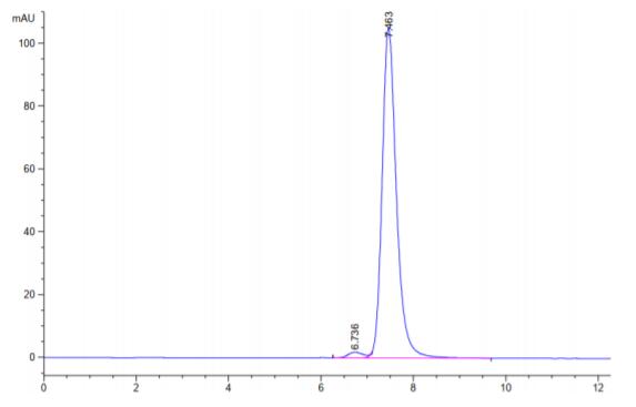 | Molecular Mass : | The protein has a predicted MW of 50.5 kDa.Due to glycosylation, the protein migrates to 51-60 KDa based on Bis-Tris PAGE result. |