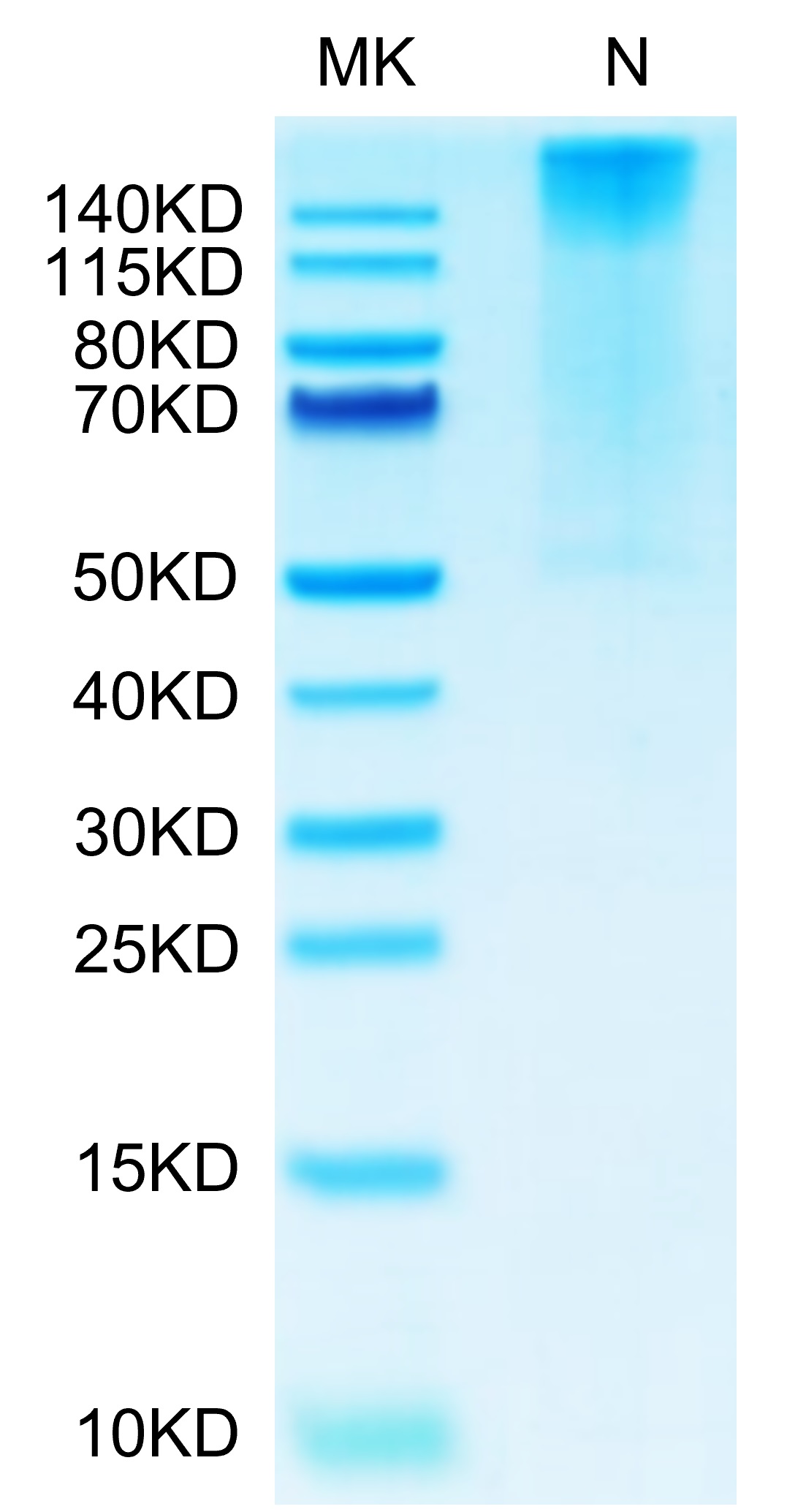 Molecular Mass : | The protein has a predicted MW of 258 kDa. Due to glycosylation, the protein migrates to 260-265 kDa under Non reducing (N) condition based on Tris-Bis PAGE result. |