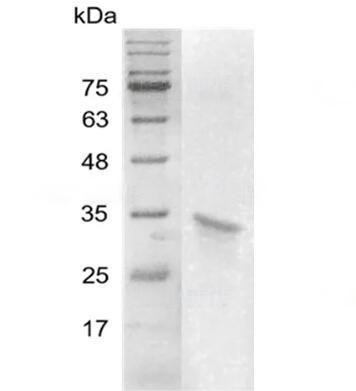 | Molecular Mass : | The protein has a calculated MW of 24.84 kDa. The protein migrates as 34 kDa under reducing condition (SDS-PAGE analysis). |