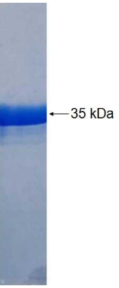 Form : | The purified protein was lyophilized from sterile phosphate-buffered saline (PBS: 58 mM Na₂HPO₄, 17 mM NaH₂PO₄, 68 mM NaCl, pH 8.0). Prior to lyophilization, 5% (w/v) trehalose and 5% (w/v) mannitol were incorporated as cryoprotective excipients. The protein was eluted with a buffer containing 100 mM reduced glutathione (GSH). |
