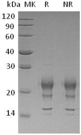 Reconstitution : | Always centrifuge tubes before opening. Do not mix by vortex or pipetting. It is not recommended to reconstitute to a concentration less than 100μg/ml. Dissolve the lyophilized protein in distilled water. Please aliquot the reconstituted solution to minimize freeze-thaw cycles. |