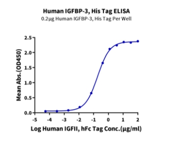 | Bio-activity : | Immobilized Human IGFBP-3, His Tag at 2ug/ml (100ul/well) on the plate. Dose response curve for Human IGF-II, hFc Tag with the EC50 of 0.19ug/ml determined by ELISA (QC Test). |