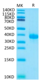 | Molecular Mass : | The protein has a predicted MW of 27.5 kDa. Due to glycosylation, the protein migrates to 35-40 kDa based on Tris-Bis PAGE result. |