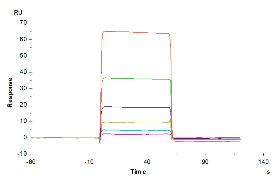 | Bio-activity : | Human B7-H5, hFc Tag captured on CM5 Chip via Protein A can bind Human VSIG3, His Tag with an affinity constant of 14.44 μM as determined in SPR assay (Biacore T200). |