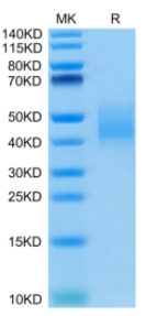 | Molecular Mass : | The protein has a predicted MW of 27 kDa. Due to glycosylation, the protein migrates to 40-48 kDa based on Tris-Bis PAGE result. |