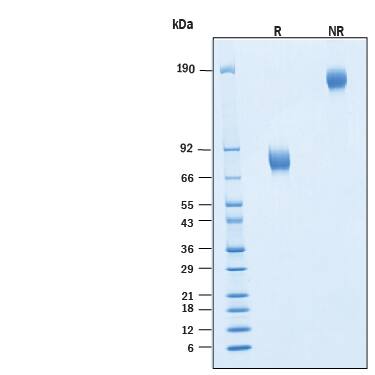 | Molecular Mass : | Predicted Molecular Mass: 50 kDa SDS-PAGE: 72-82 kDa, under reducing conditions. |