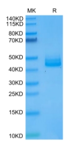 | Molecular Mass : | The protein has a predicted MW of 34.7 kDa. Due to glycosylation, the protein migrates to 40-50 kDa based on Tris-Bis PAGE result. |